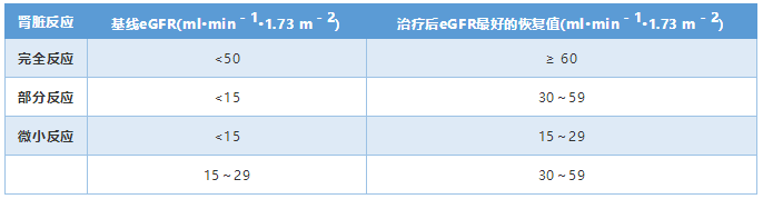 表5 多发性骨髓瘤肾损伤治疗后肾脏反应的评估标准